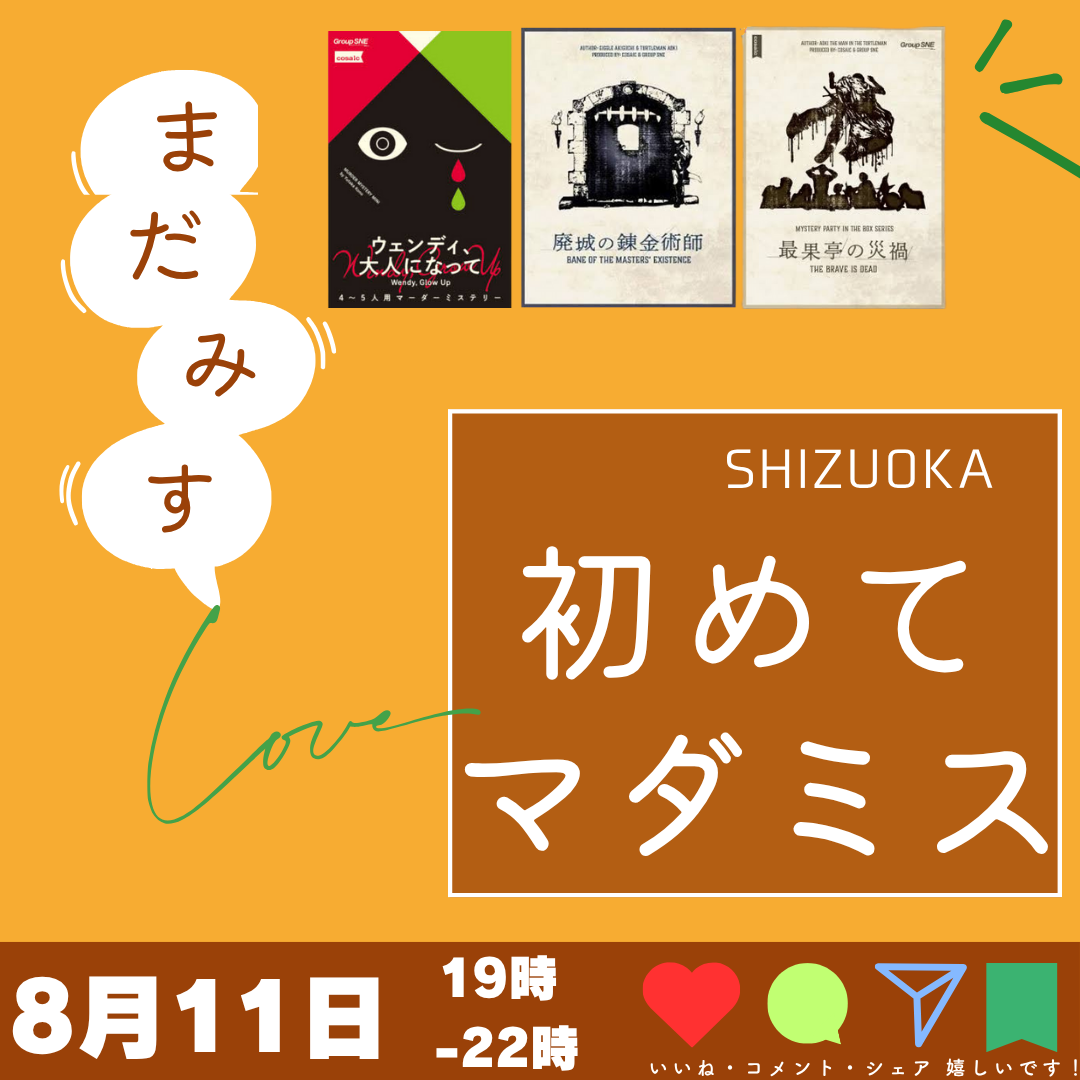 マダミスに興味がある人、遊びたい人がお店に集まって楽しもう!という企画でございます。